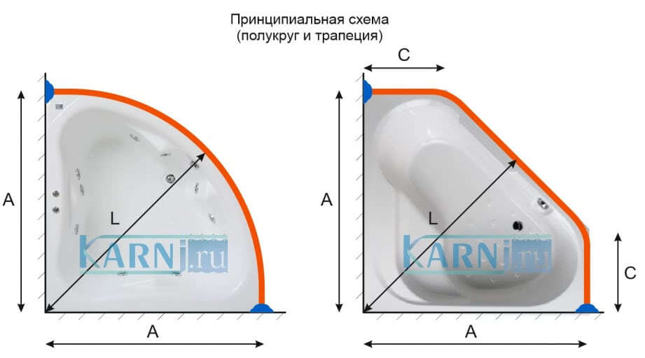 - Подходит для правой и для левой ванн